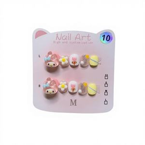 เล็บปลอมลายการ์ตูนเมโลดี้สำหรับเด็ก แบบกดติดสำหรับนิ้วมือ เล็บปลอมสำเร็จรูปสำหรับเด็กเล็กและเด็กอายุ 2-8 ปี