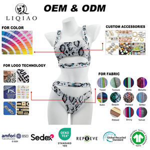 ชุดบิกินี่ลายงูแบบ OEM/ODM พร้อมรายละเอียดประดับลูกปัด สีตามสั่ง ชุดว่ายน้ำชายหาดสำหรับผู้หญิง แบรนด์แฟชั่นยั่งยืนจากโรงงาน