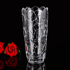 แจกันแก้วทรงกระบอกคริสตัลตกแต่งบ้านแบบเป็นมิตรกับสิ่งแวดล้อม มีสไตล์ ใส ลายนูน