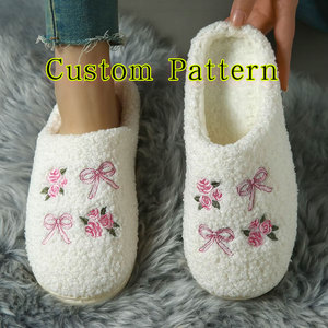 รองเท้าแตะแบบปิดหัวเท้า พื้นหนา กันลื่น ลายดอกไม้ ประดับโบว์ สำหรับฤดูหนาว ทำจากผ้าฝ้าย ใส่ในบ้าน สำหรับผู้หญิง ผู้ชาย คู่รัก ลายการ์ตูน ให้ความอบอุ่น