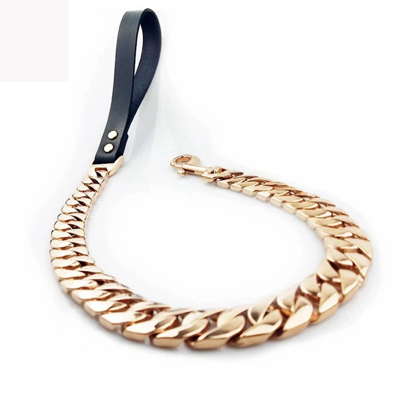 เดิม! 18 K Gold Super Luxury สุนัขขนาดใหญ่สุนัข Strong CHAIN 32 มม.อุปกรณ์เสริมสำหรับสัตว์เลี้ยง Pitbull COLLAR